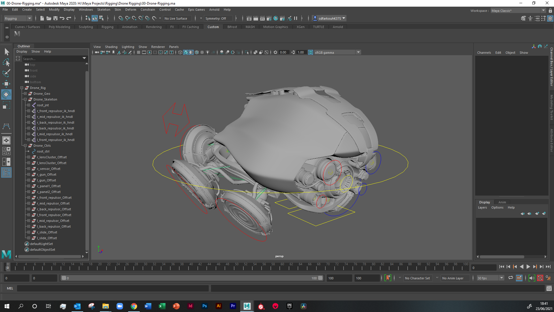 This is the creation of a basic control rig in Maya ready for animation. It includes a skeletal rig with FK controls, IK to enable the cables to bend realistically with the movement of the wheels and a simple SDK control to easy animate the movement of the wheels up and down the track as a pre defined animation control.