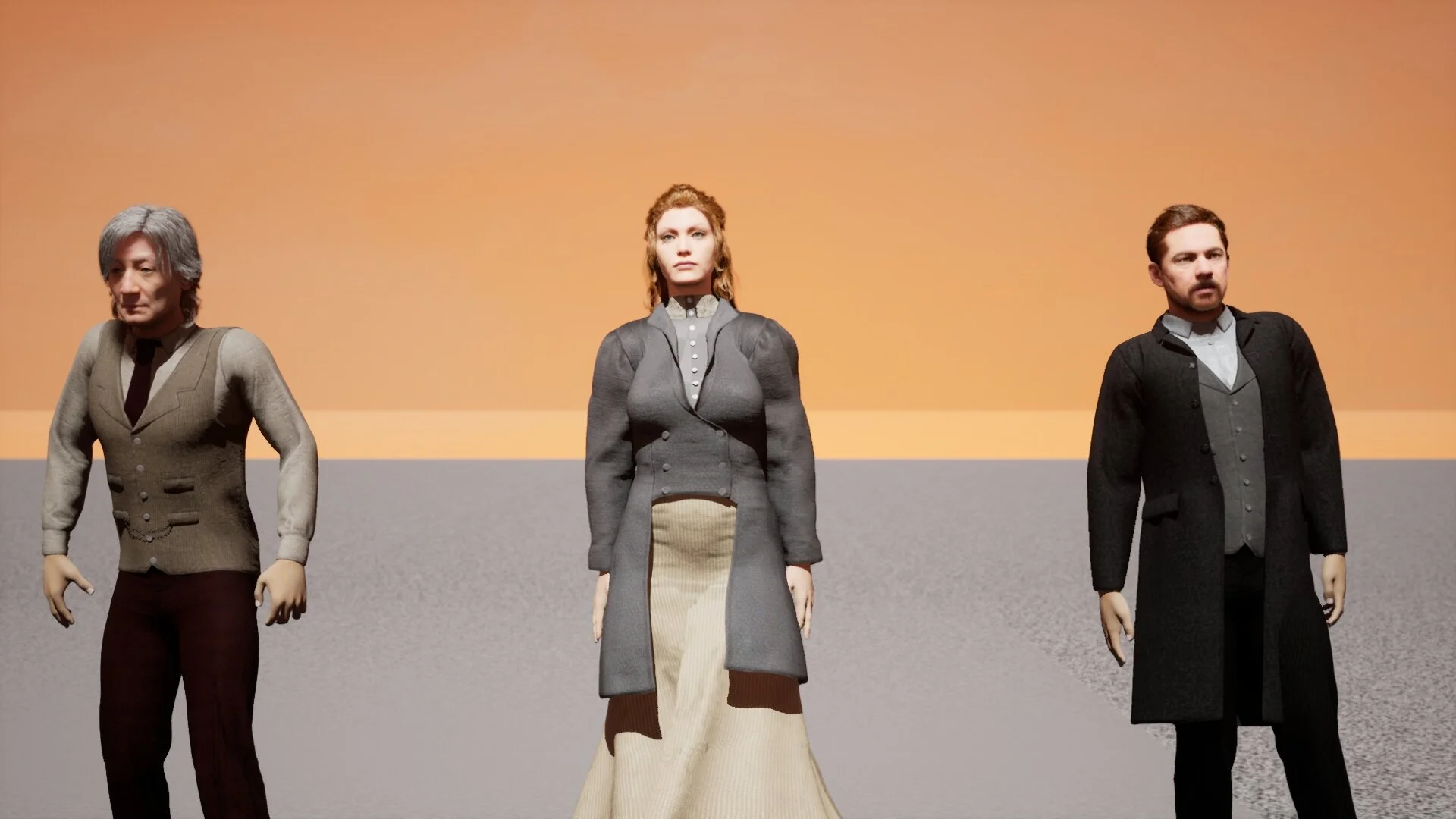 This is the creation of three custom Victorian characters using the Genesis 8 skeleton (Daz) for period costumes, with Metahuman Creator for the head. You can retarget Epic or Mixamo animations to the body or use motion capture & operate facial animation to the head via Control Rig and/or ARKit. Thanks to David Williams for character set up guidance. To cleanly retarget animation or MOCAP to the Genesis 8 skeleton there is hard to find guidance here.