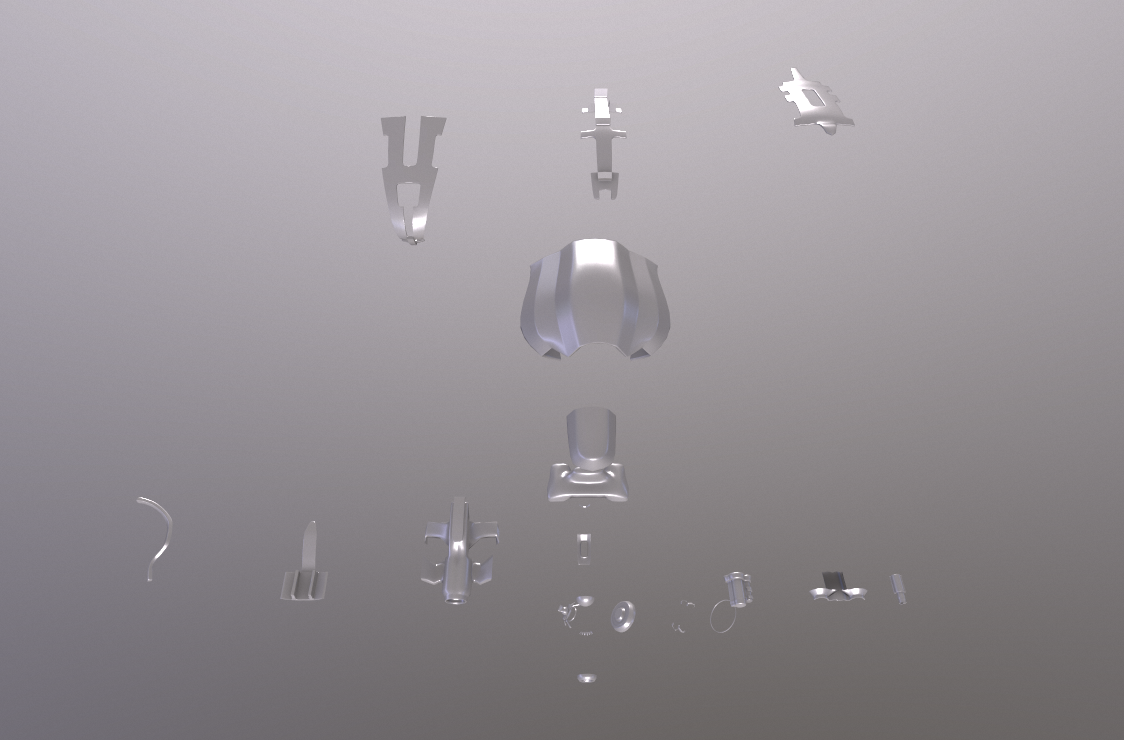 Finally you explode all the parts using the animation slider in order to keep them separated in the baker to avoid baking issues from overlapping geometry, and you export both the high and low poly as separate FBX files sharing identical world space coordinates.